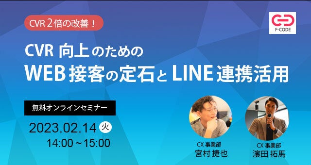 株式会社エフ・コード(本社:東京都新宿区、代表取締役社長:工藤勉、証券コード:9211、以下「当社」)は、無料ウェビナー『CVR向上のためのWEB接客の定石とLINE連携活用』を開催します。