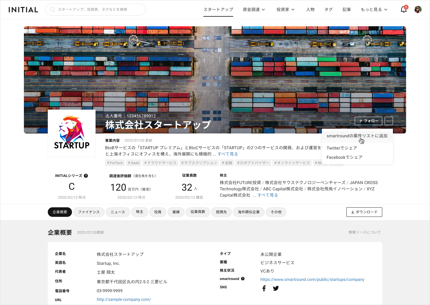株式会社ユーザベースが提供するスタートアップ情報プラットフォーム「INITIAL」は、スタートアップと投資家のためのデータ作成・管理プラットフォーム「smartround」を運営する株式会社スマートラウンドと業務提携契約を締結いたしました。本契約に基づき2022年7月26日(火)より新たに、INITIAL上で検索したスタートアップ情報をsmartroundの「案件管理リスト」および「投資管理リスト」に追加できるようになります。
