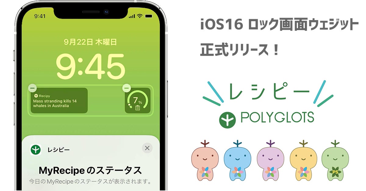英語学習アプリ『レシピー』が、iOS16の新機能ロック画面ウィジェットを正式リリース - 株式会社ポリグロッツ( POLYGLOTS )