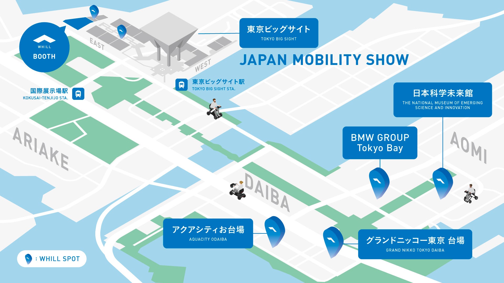 〜誰もが自由に利用できるWHILLのスポットを複数設置し、「JAPAN MOBILITY SHOW 2023」で活気が一層高まる同エリア内の回遊利便性を向上〜