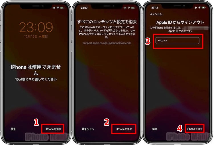 iPhone パスワードを忘れて、何度も間違えたパスワード入力したら、待つ時間がどんどん長くなります。間違えたパスワードを10回入力しまったら、iPhoneが使えなくなります。