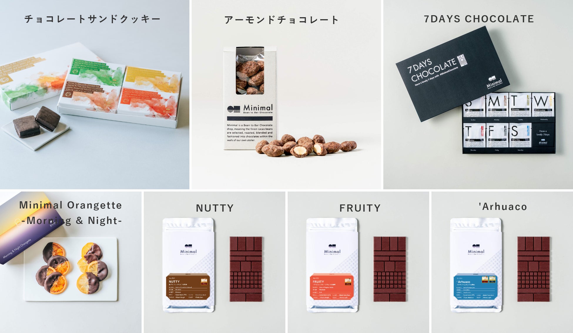 Minimal は世界のカカオ産地を訪れ良質なカカオ豆から職人が一つ一つ手仕事でチョコレートの製造をしています。「丁寧にシンプルに、最高の素材を活かし香りを最大限に引き出す」という原点に真摯に、国内外の星付きレストランやトップパティスリーで腕を磨いてきたパティシエ・ショコラティエ・職人達が切磋琢磨し、チームワークでMinimalのチョコレートやスイーツをつくります。