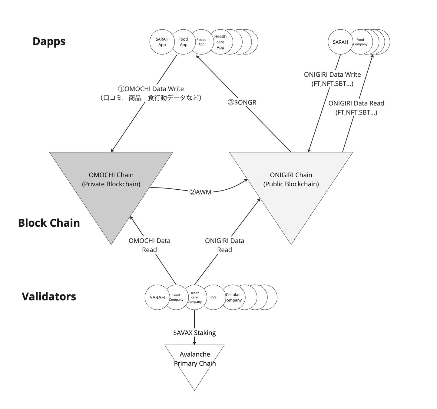 このONIGIRI System は、Ava Labs社が提供する Avalancheチェーンを活用することで実現可能しており、世界初となる形式でのユースケースとなっています。(自社調べ)