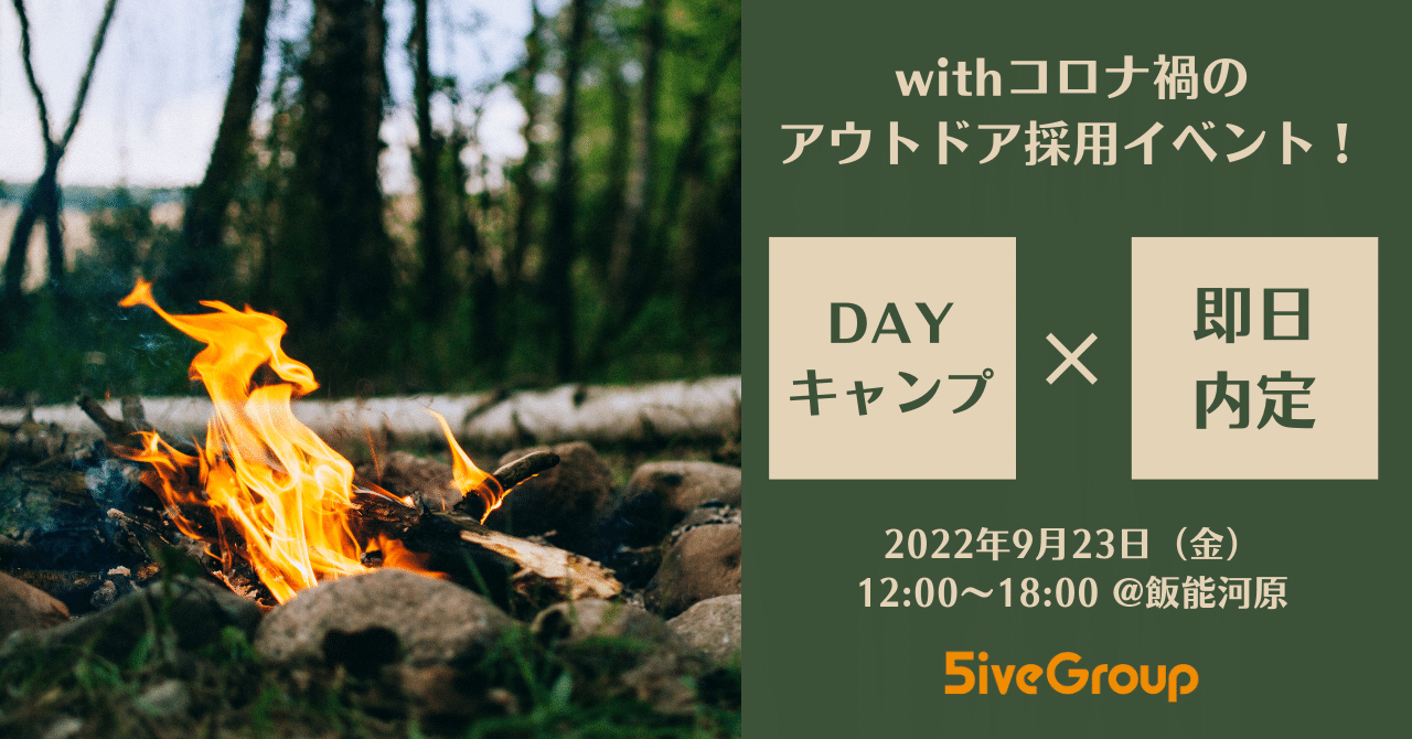 ファイブグループは23卒・既卒の就活生を対象に、withコロナ時代でもお互いをよく知れるアウトドア採用イベント「Camping Recruiters」を実施します。