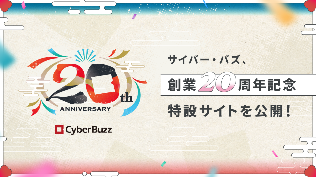 ソーシャルメディアマーケティング事業を展開する株式会社サイバー・バズ(本社:東京都渋谷区、代表取締役社長:髙村 彰典)は、2026年4月3日に創業20周年を迎えるにあたり、創業20周年記念特設サイトを公開したことをお知らせいたします。