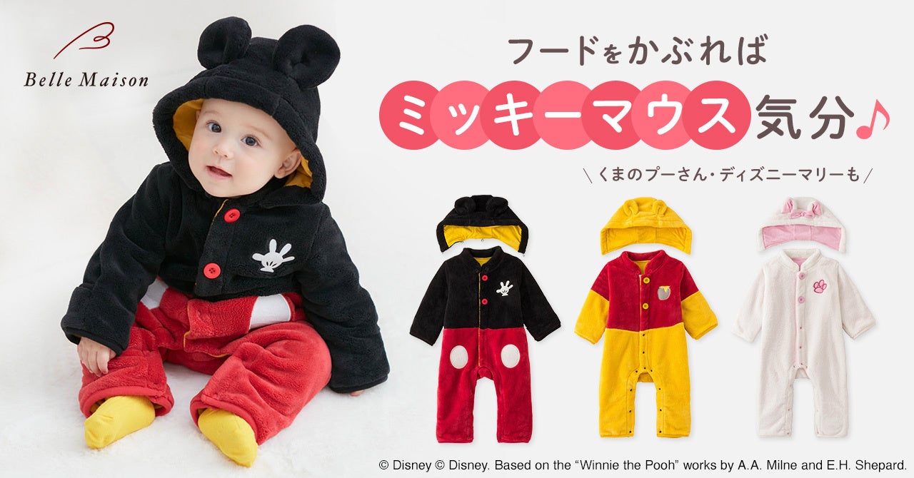 フードをかぶればミッキーマウス気分♪よちよち歩きさんにぴったり!もこもこジャンプスーツ 9月25日(月)よりリバイバル販売