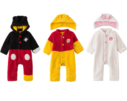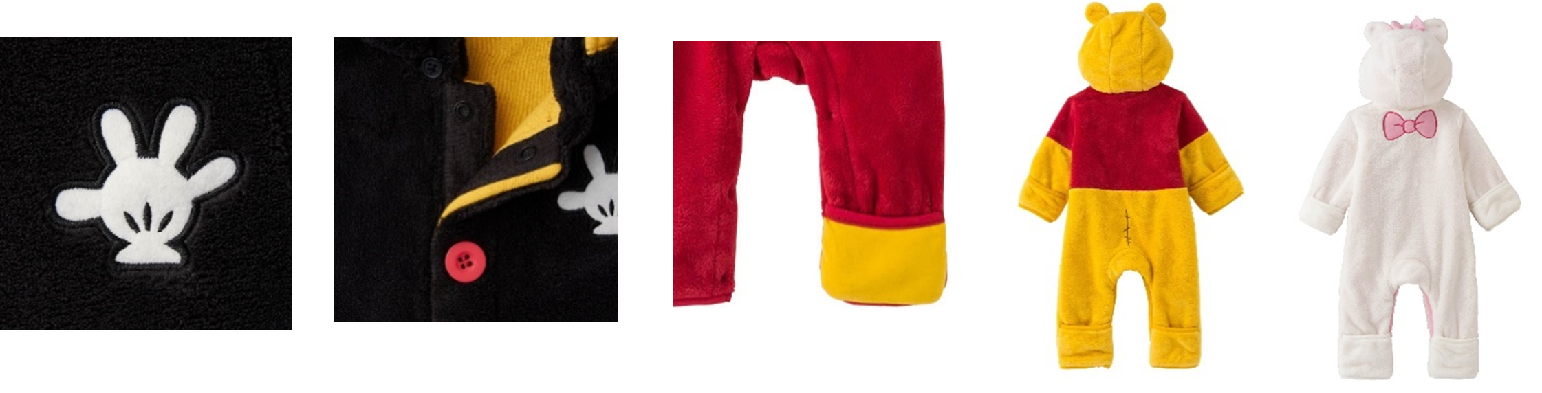 今回再発売する「フードがとりはずせるあったかジャンプスーツ」は、よちよち歩きを始める頃のお子さんにぴったりのジャンプスーツとよばれる上下がつながったタイプのウエアです。フードをかぶればまるでディズニーキャラクターのぬいぐるみになったかのような姿になり、今しかないお子さんの仕草や振る舞いが更に愛おしくなるような商品です。