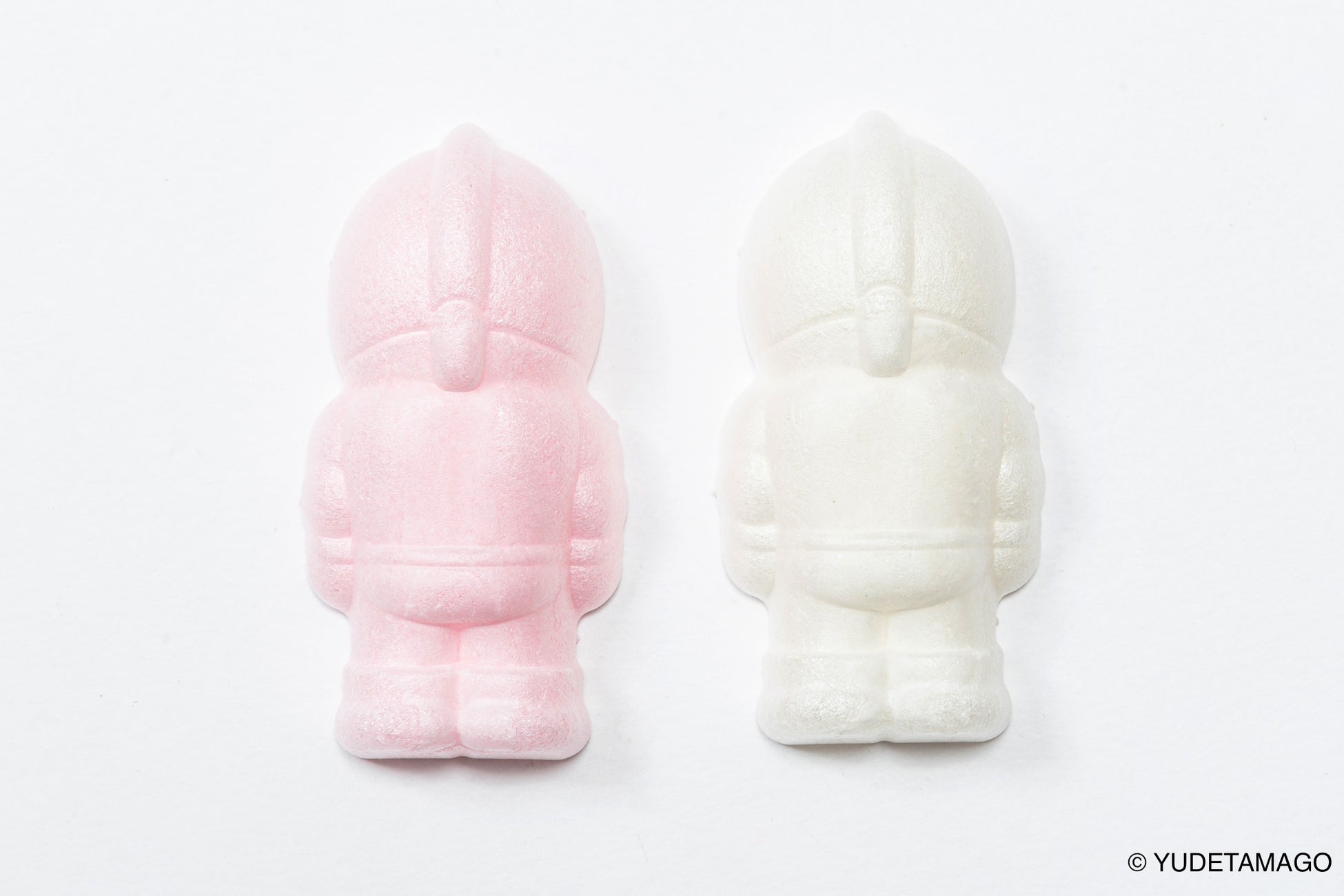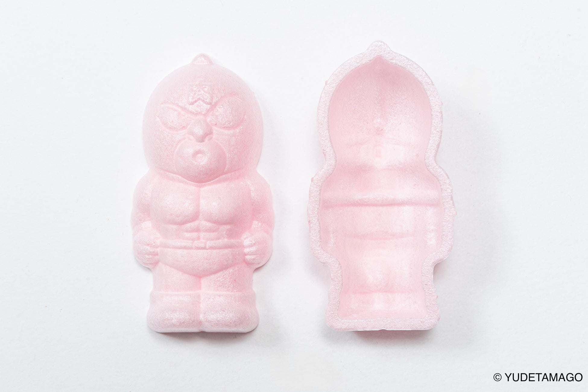 トイブランド HKDSTOY(ヒキダシトイ)と福岡発の和菓子店「ひつじや」とのコラボレーションによる、ミニソフビのようにデザインされた、かわいらしい「キン肉マンモナカ」。