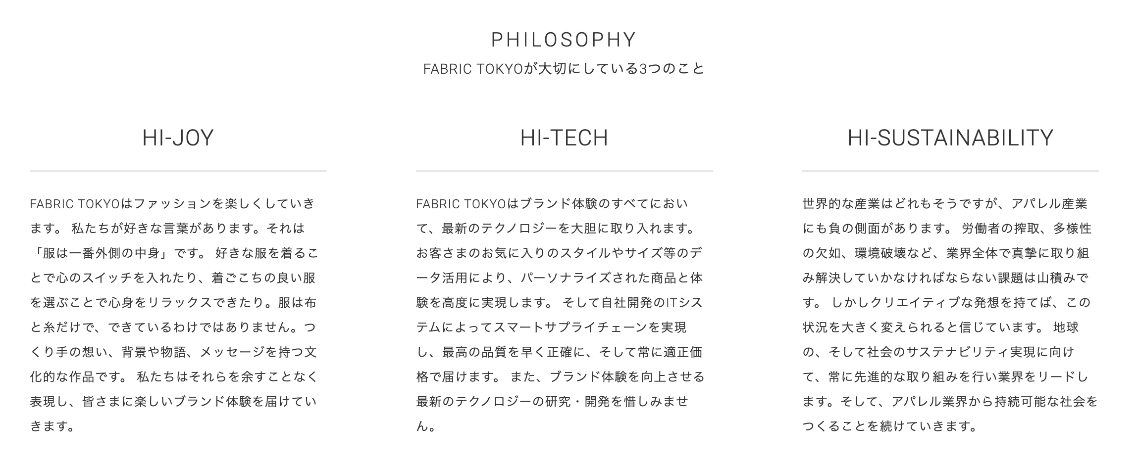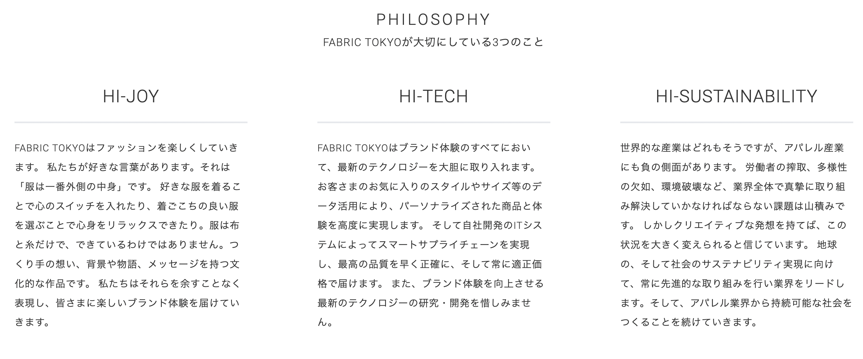 ※1 PHILOSOPHY FABRIC TOKYOが大切にしている3つのこと