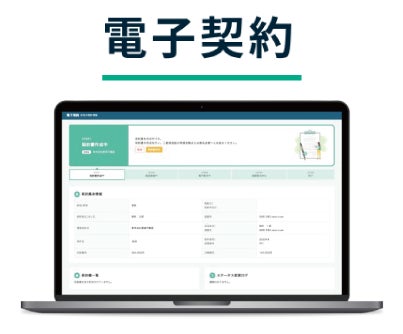 「賃貸借契約の契約・更新」「駐車場の契約」をオンライン上で締結できるクラウドサービスです。これまで対面や郵送で行っていた契約業務の一部が簡単・安全にオンラインで行え、契約業務の効率化とコスト削減に貢献します。