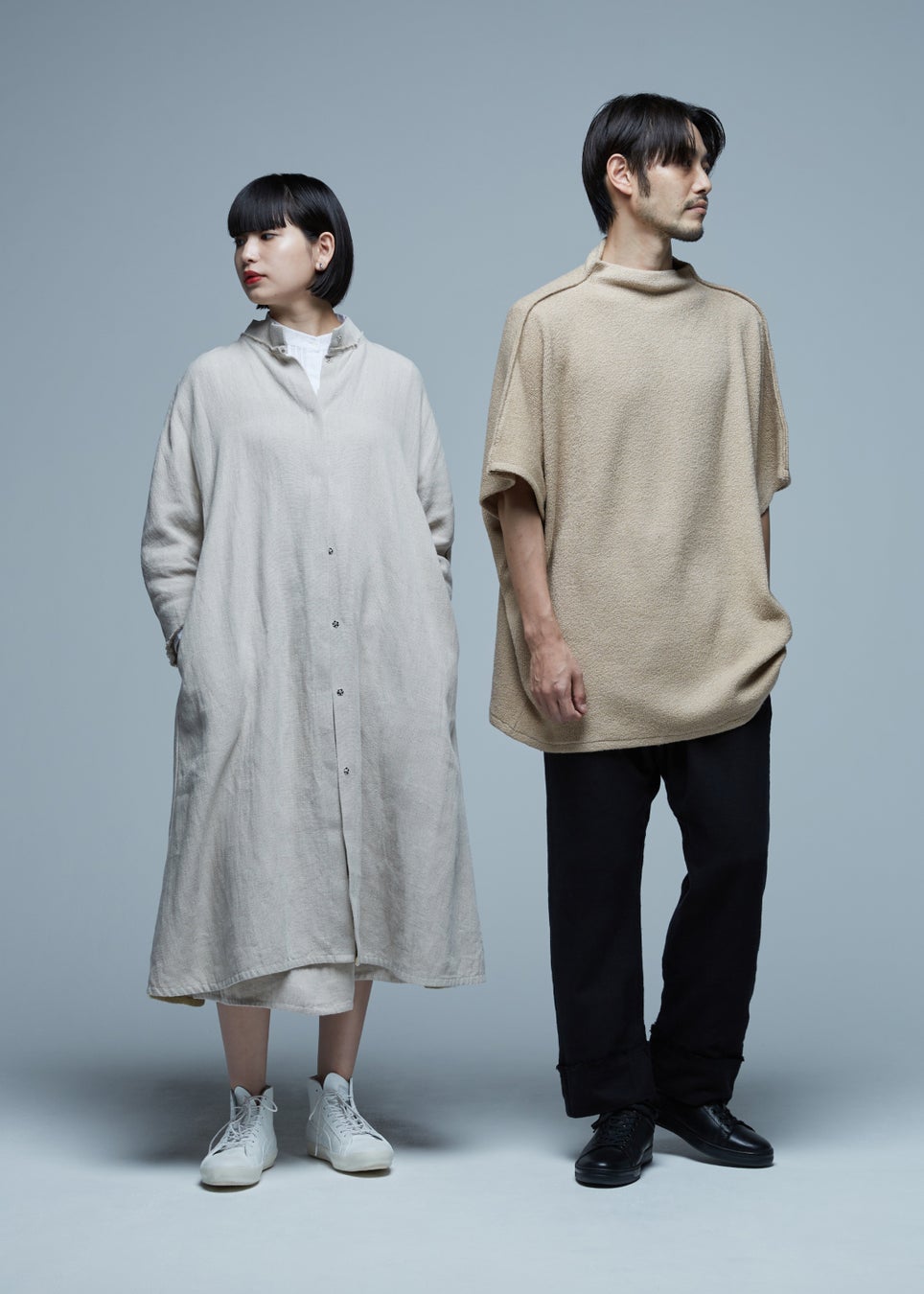 既存の概念にとらわれず、「女性らしさ」や「男性らしさ」さえも意識することなく、徹底した素材との対話から生まれたデザインには、性別や年齢を問わないボーダーレスな表現が導き出されており、着る人の持つ雰囲気や体型に合わせて表情を変えます。