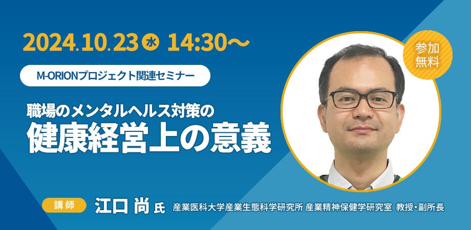 【10月23日(水)14:30開始】産業医科大学産業生態学科学研究所 教授・江口尚氏登壇「職場のメンタルヘルス対策の健康経営上の意義」ライブ配信セミナー開催