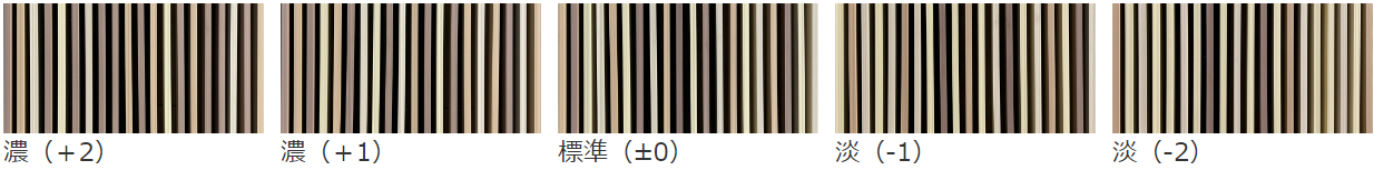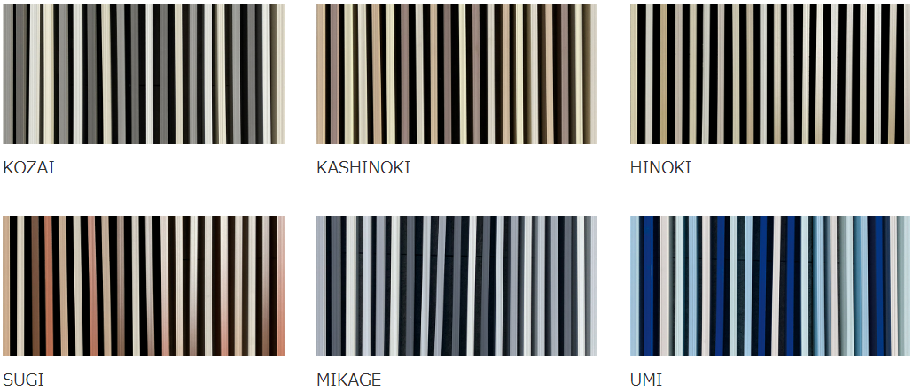 この度発売した「アットランダム」は、自然界の素材をイメージし、調和のとれた4色をランダムに配置した6種類のプランをご用意しました。それぞれのプランには、標準(±0)に加え4色の組み合わせ比率を変えた、濃(+2、+1)と淡(-2、-1)もラインアップ。建物のイメージに合わせ、お好みのプランをお選びいただくことで、手軽に美しく調和のとれたランダム張りを実現することが可能です。焼付塗装が可能な外装ルーバーはもちろんのこと、内装ルーバーにも対応しています。