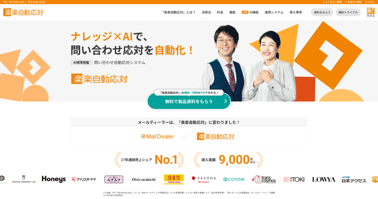 ・「楽楽自動応対」(旧名称:メールディーラー)