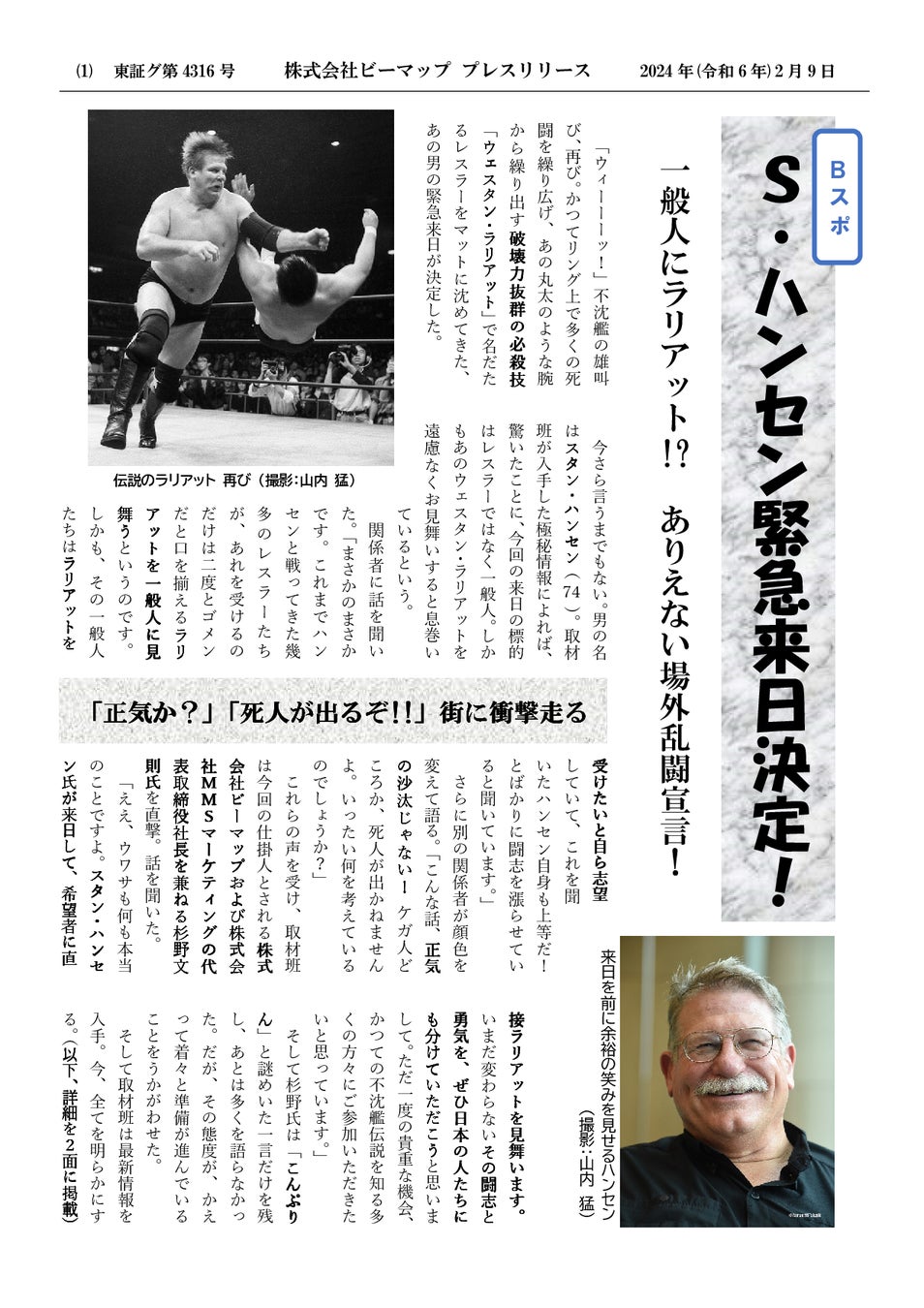 ラリアットを受ける様子を本物の東スポカメラマン・記者が取材し、作成するオリジナル号外