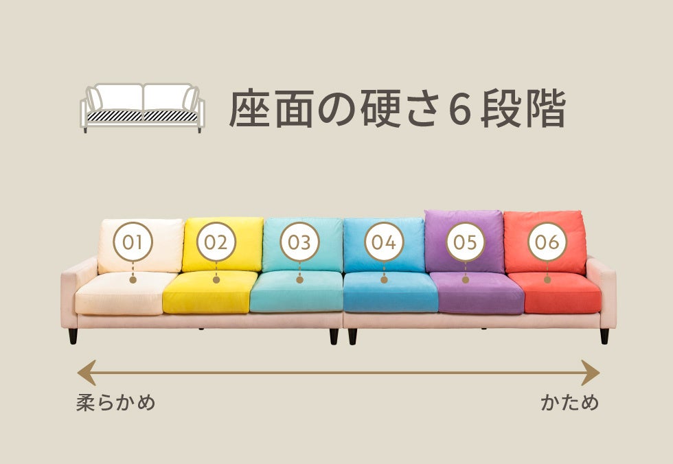 ■一台のソファで6段階の座り心地が試せる「フィッティングラボ」