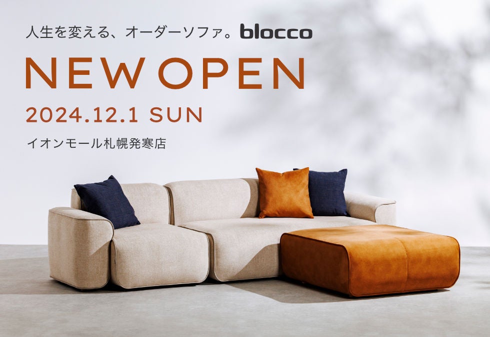 新築・リフォーム住宅をはじめインテリアショップ・飲食店計10店舗を運営する(株)ジョンソンホームズ(本社:北海道札幌市西区、代表:山地 章夫)は、オーダーソファ専門店blocco(ブロッコ)の新店舗を札幌市西区 イオンモール札幌発寒内に12月1日(日)オープンします。【Webページ】https://www.bloccoshop.jp/news/hassamu-open/