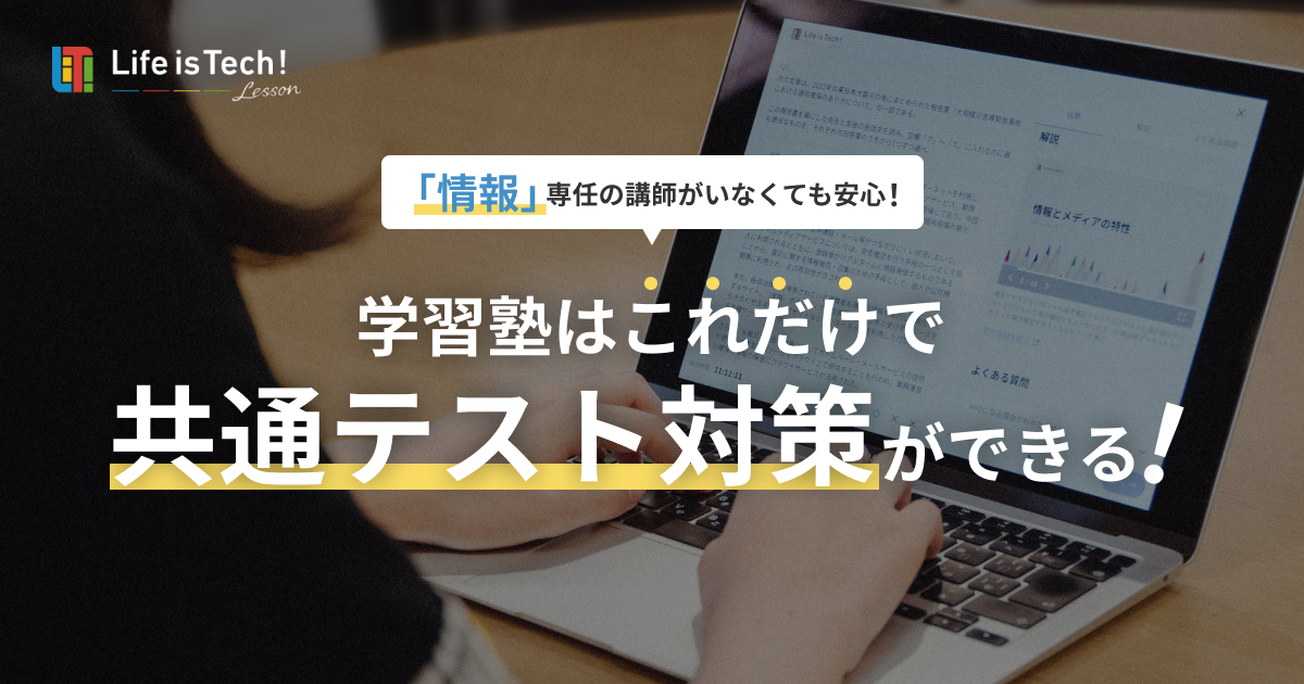 「情報」専任の講師がいなくても安心!ライフイズテックのプロ講師がオンライン上でリアルタイム(※)で質問に対応。学習塾側の負担を最小限に抑え、学習塾はこれだけで共通テスト対策ができます。