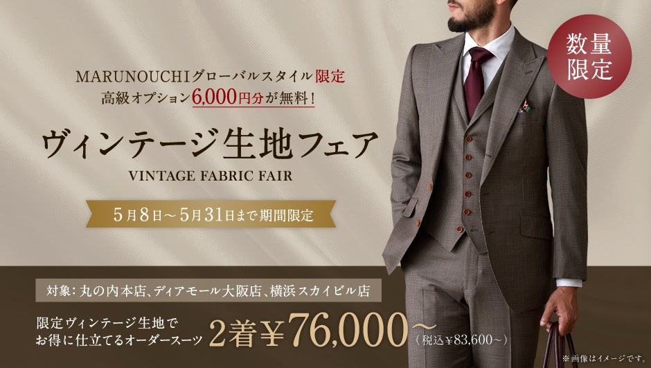 ぜひお得なフェアの期間に、MARUNOUCHIグローバルスタイルでのオーダースーツ作りをお試しください。