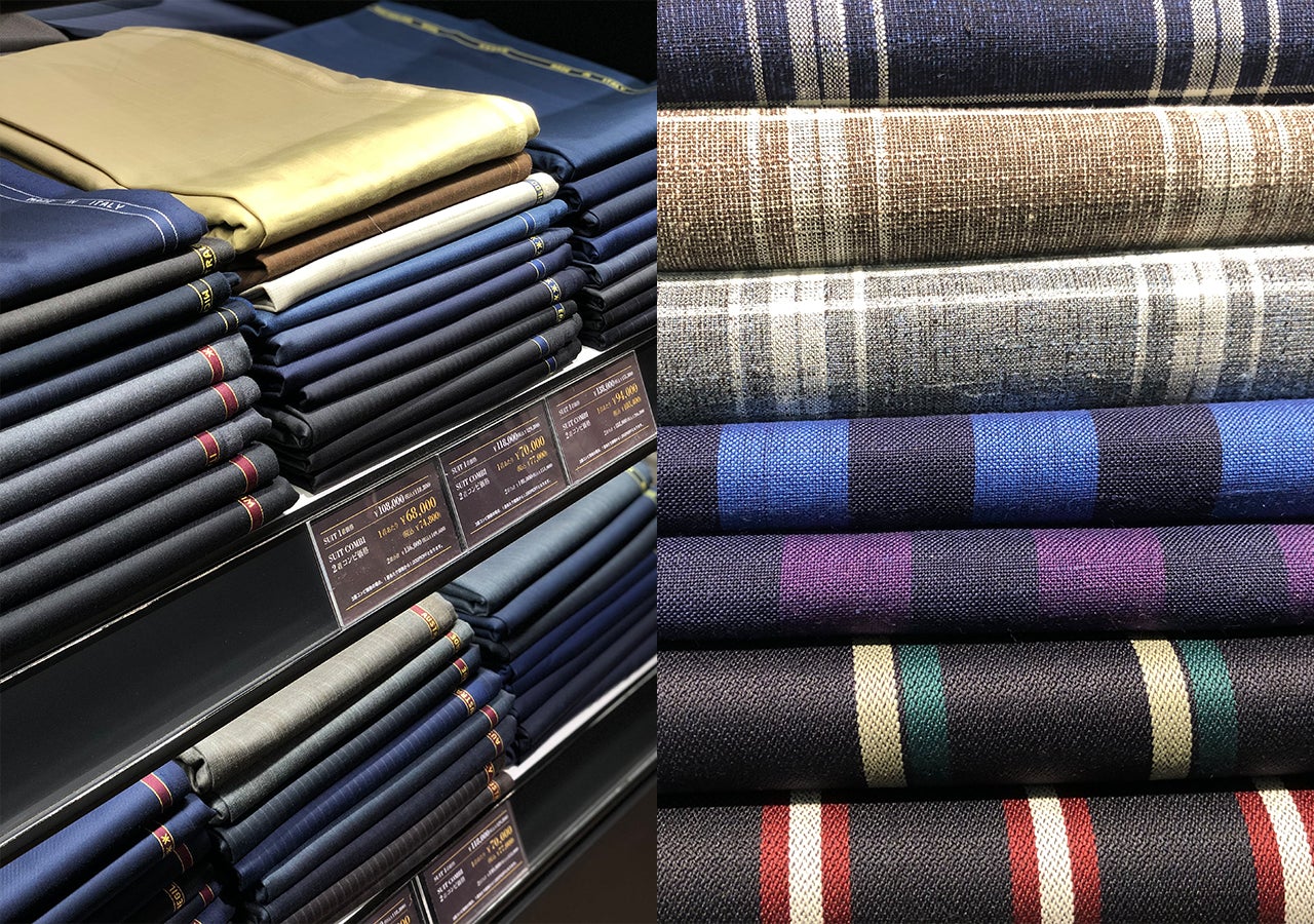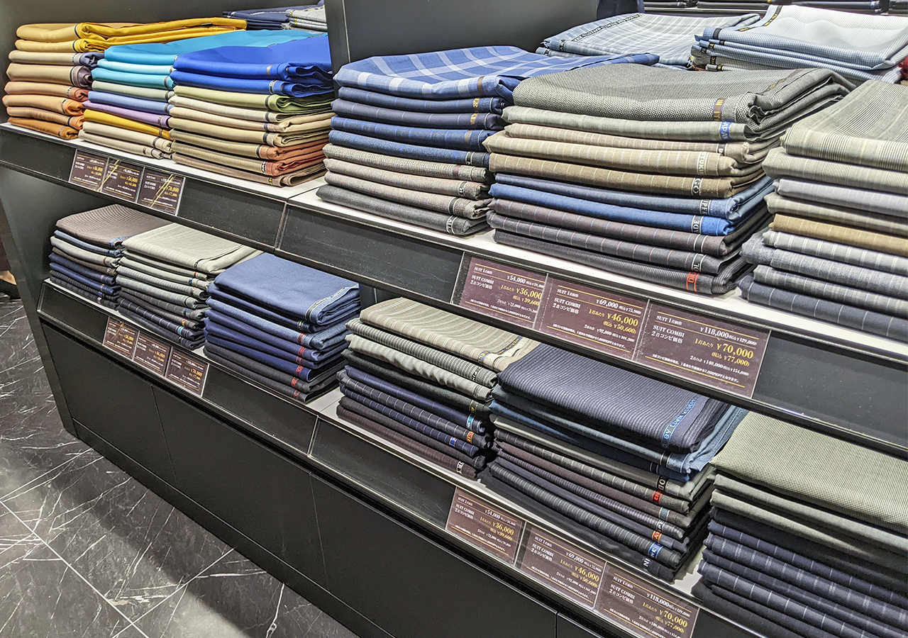 ビジネススーツに最適な生地はもちろん、カジュアルな柄モノのデザインも豊富。