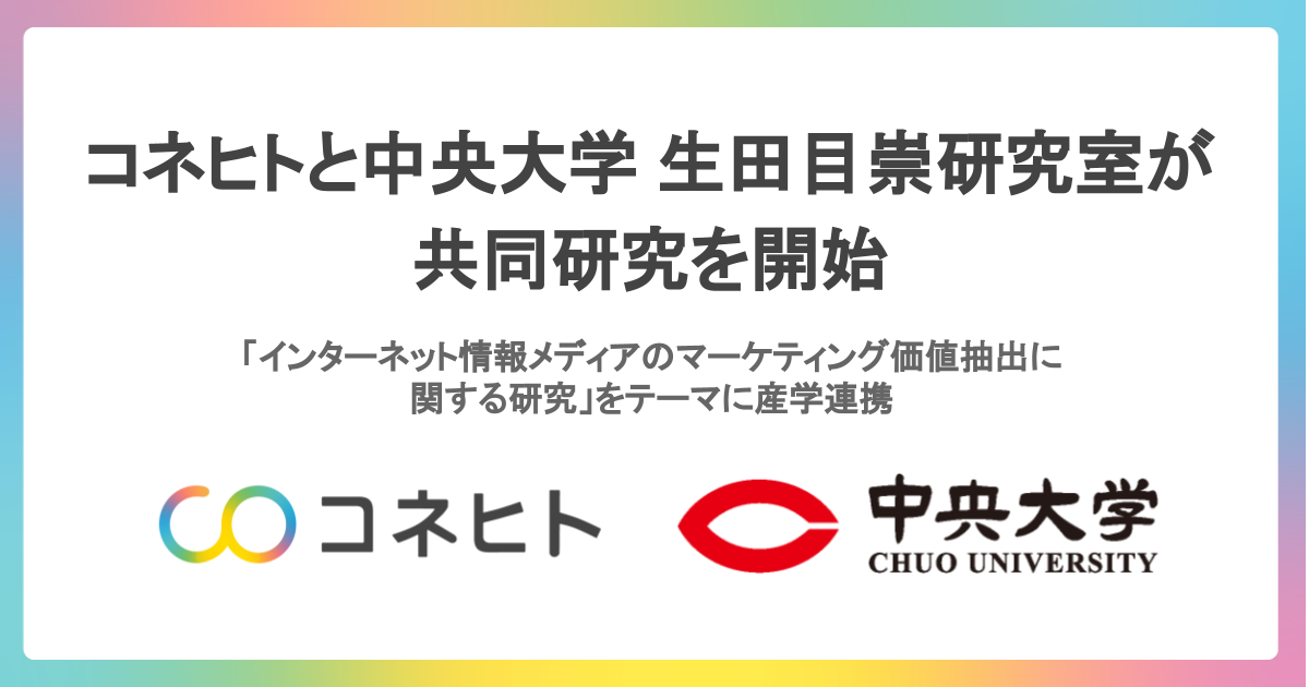 コネヒトと中央大学 生田目崇研究室が共同研究を開始。「インターネット情報メディアのマーケティング価値抽出に関する研究」をテーマに産学連携