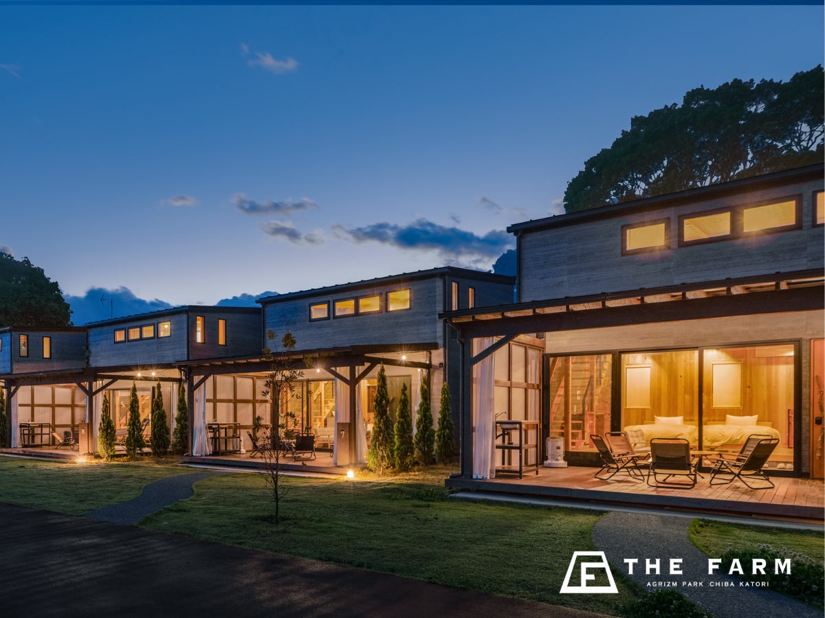 2016年5月創業。千葉県に関東最大級のグランピング施設を有し、アウトドア・イノベーションサミットで6年連続アワード受賞し殿堂入りした農園リゾート「THE FARM(ザファーム)」の運営を行う。経営理念は「農ある暮らしをすべての人に」。新しいスタイルの手軽な農業体験・アウトドアの楽しみ方を提供。