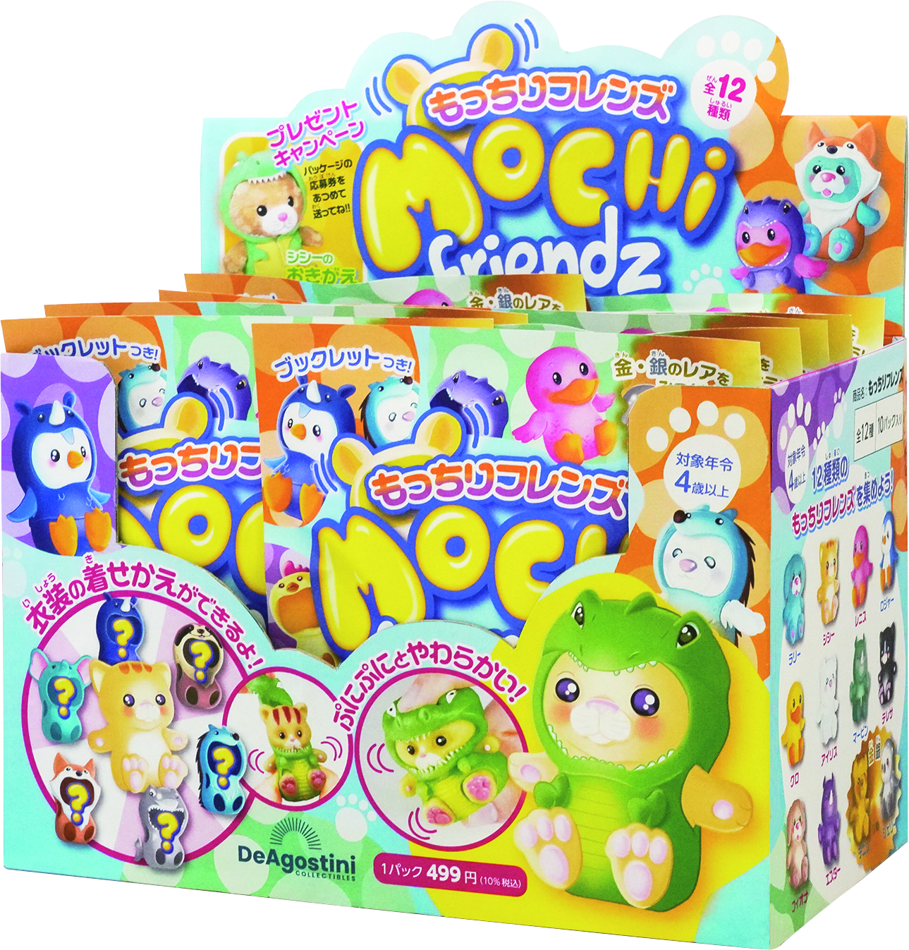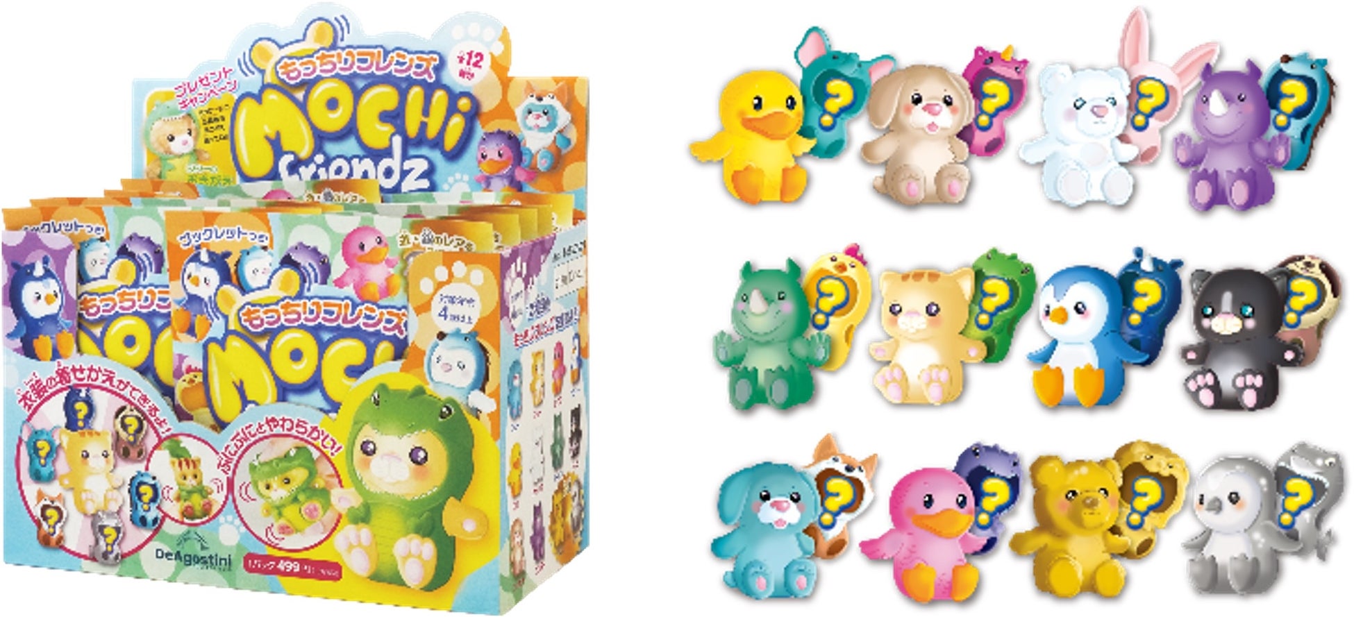 『もっちりフレンズ』はもっちりぷにぷにの素材で、着せ替えのできるフィギュア。かわいい動物と着ぐるみがセットになっており、集めると好きな組み合わせに着せ替えたり、お友達と交換したりして楽しむことができます。