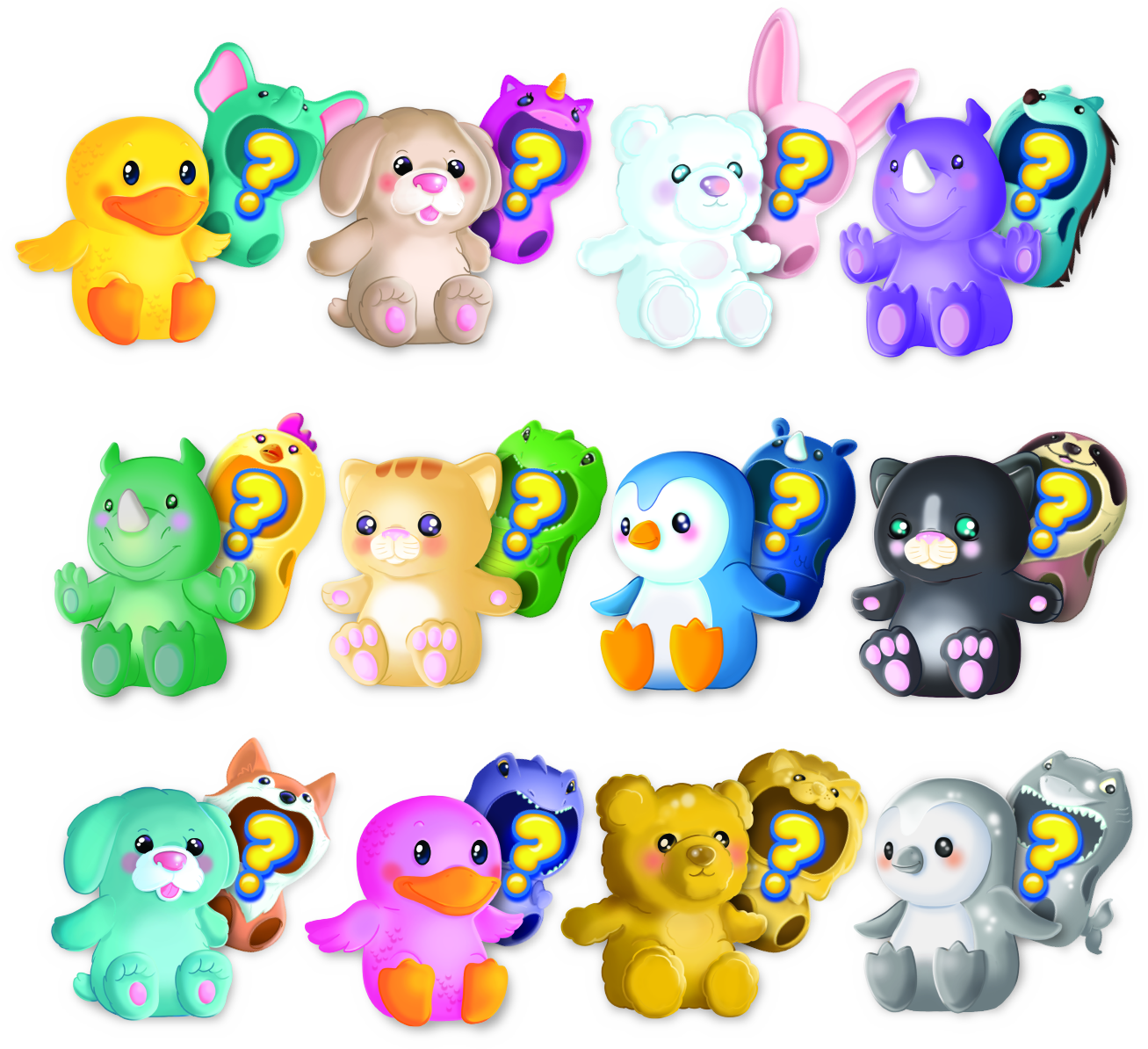 「もっちりフレンズ」は、12種類の”フレンズ”(動物)たちと”衣装”(着ぐるみ)がセットになったフィギュアです。衣装は着せ替え可能で、好きな組み合わせで遊べるのが魅力の一つ。お友だちと交換したり、たくさんの種類を集めたりして、お気に入りの組み合わせを見つけることができます。 全12種集めると、144通りもの組み合わせで自由に着せ替えを楽しめます。