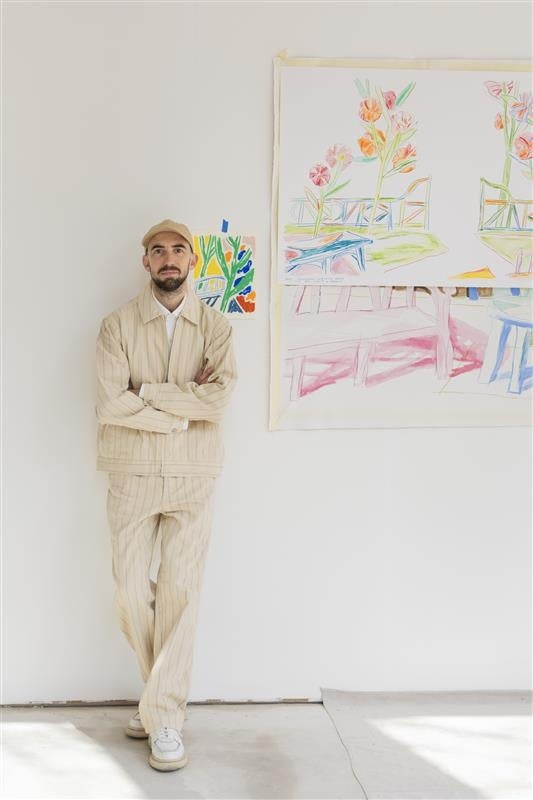 アートとイラストレーション、デザイン、そして建築が交差するアレクサンドル・ベンジャミン・ナヴェの作品は、爽やかでいきいきとした色彩が空間に押し寄せ、見る人をダイレクトに捉えます。2011年にÉcole nationale supérieure de création industrielle ENSCI–Les Ateliers(フランス国立工業デザイン研究所)を卒業した彼は、物の表面を、まばゆい色調やオブジェ、遠近法の組み合わせへと変容させるアプローチの基礎を確立させることに修練しました。幅広い専門分野を持つアーティストとして、彼は最も得意とするオイルパステルを始め、鉛筆や日本の水彩絵の具などさまざまな材料を使いこなします。2017年、ヴァン クリーフ&アーペルが支援する〈デザイン パレード トゥーロン〉でグランプリを手にしました。2018年にはMAD(パリ装飾芸術美術館)において作品「Espèces d’espaces」が評価され、新たなニュースギャラリーを飾る「カルトブランシュ」の最初の受賞アーティストとなりました。2020年には、ヴァン クリーフ&アーペルとの春を祝うコラボレーションに参画し、2023年には、フランスの国民議会議事堂の中庭と庭園に5つのモニュメント彫刻を設置しました。