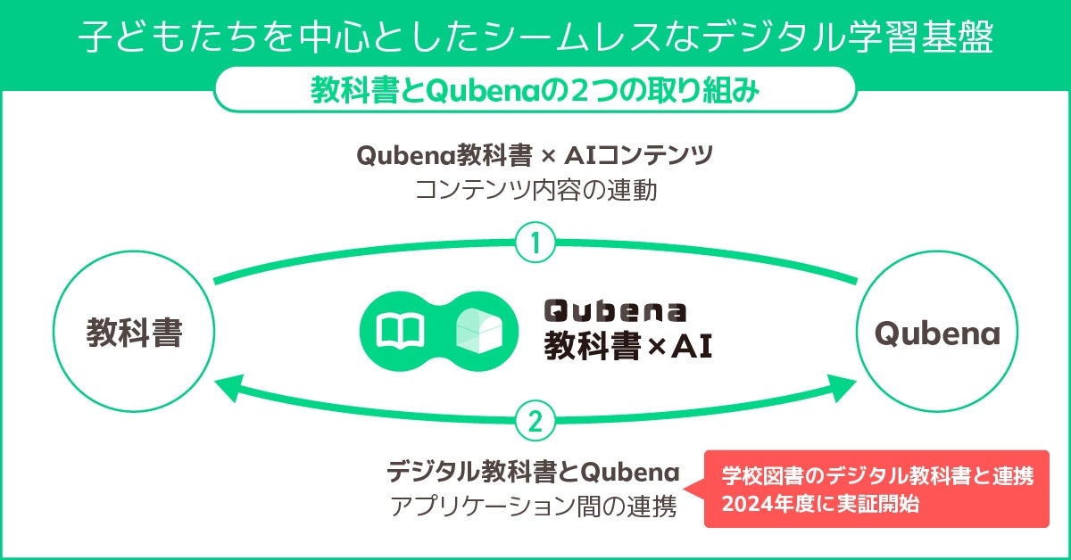 「Qubena 教科書×AI」は、「子どもたちを中心としたシームレスなデジタル学習基盤」構築の中でも、学校の主たる教科書とドリルであるQubenaのAI型教材を接続するCOMPASSの取り組みで、今回発表したデジタル教科書とQubeneのアプリケーション間の連携開発のほかに、これまでも、文部科学省検定済の主要教科書に準拠した問題である「Qubena 教科書×AI コンテンツ」をリリースしています。