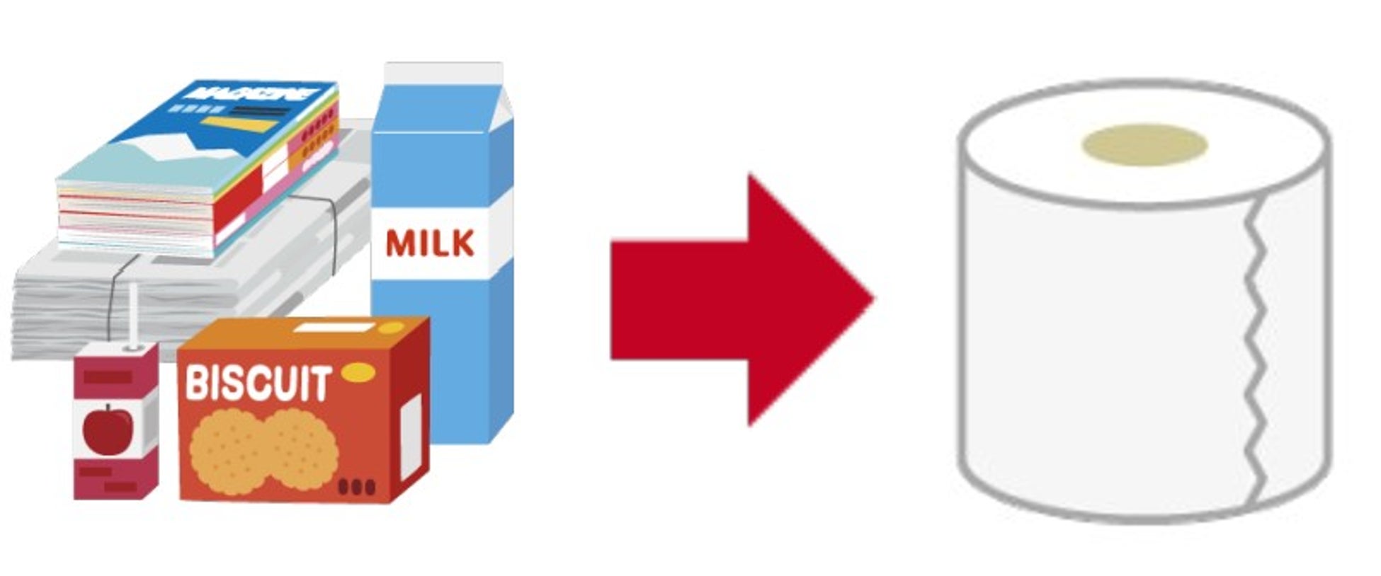 お菓子の箱やチラシ・封筒・牛乳パック・ノート・はがき・紙袋・紙コップなど家にある紙類を、