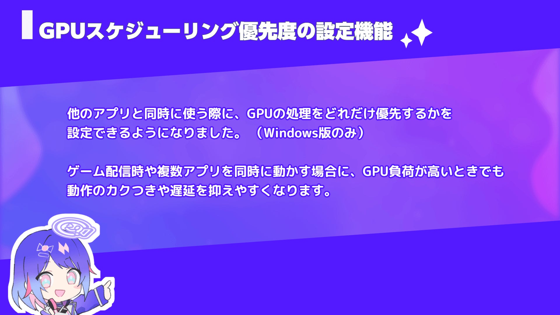 ★GPUスケジューリング優先度の設定機能(Windows版)