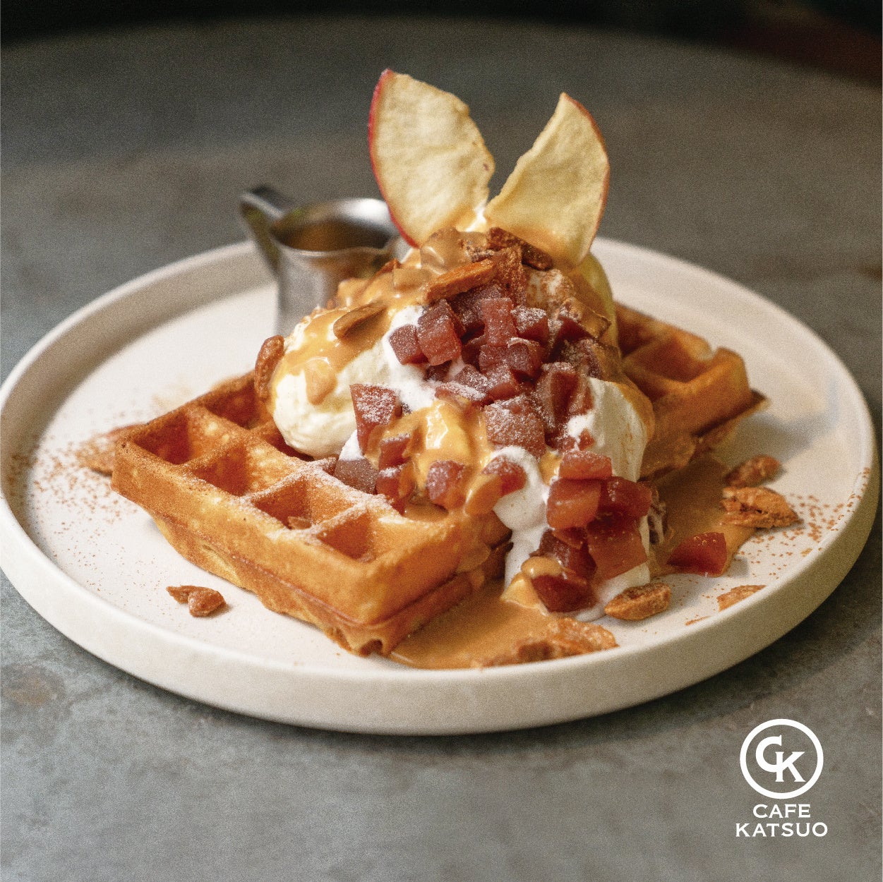 煮詰めたリンゴのコンポートと塩キャラメルアイスがほどよく甘酸っぱいワッフル。
