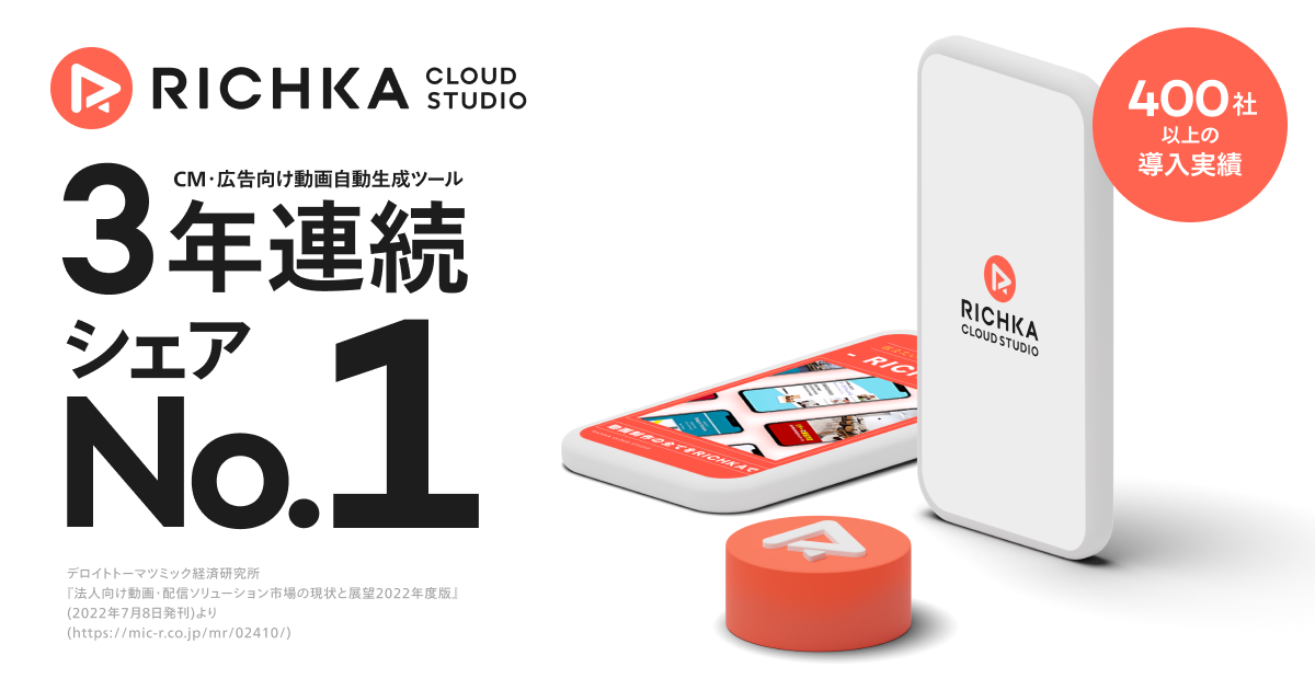 『リチカ クラウドスタジオ』CM・広告用途の動画自動生成ツールとして3年連続シェアNo.1に