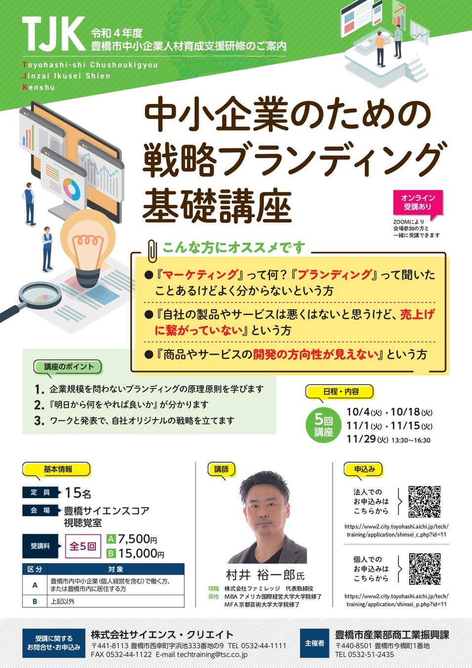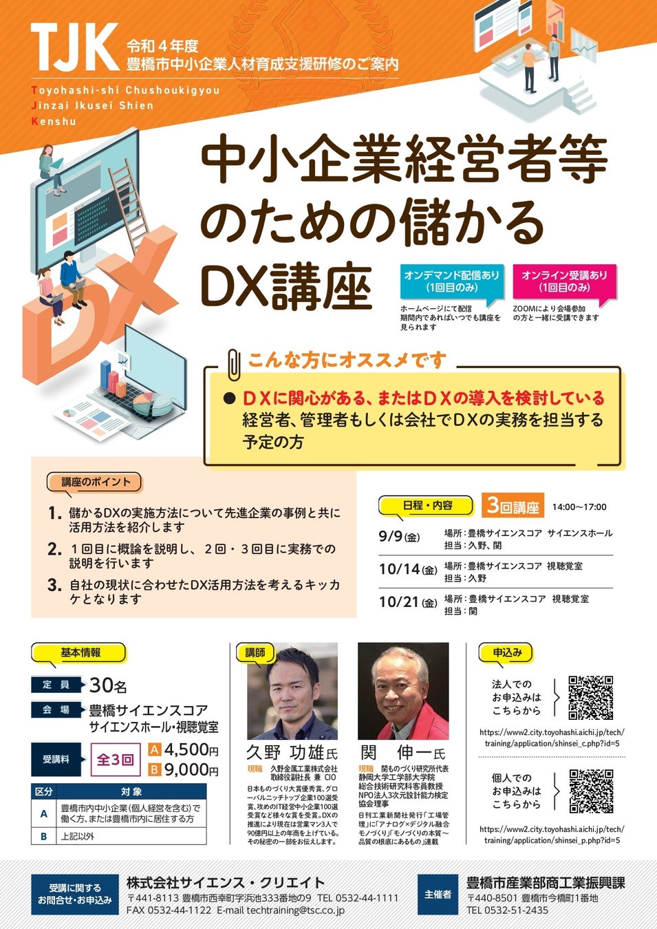 【申込方法】豊橋市ホームページから申込可能(https://www2.city.toyohashi.aichi.jp/tech/training/)