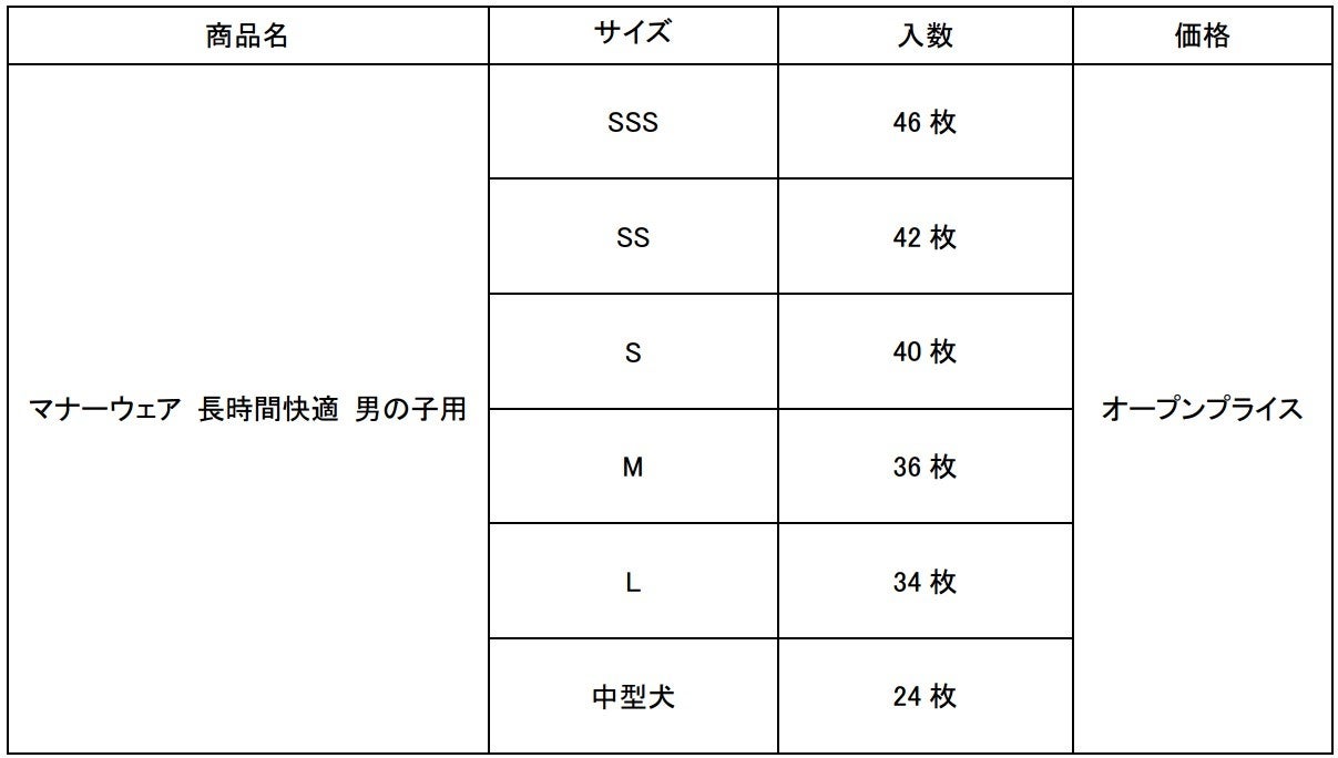 『マナーウェア 長時間快適 男の子用』通気性3倍※1に刷新、中型犬用も新登場