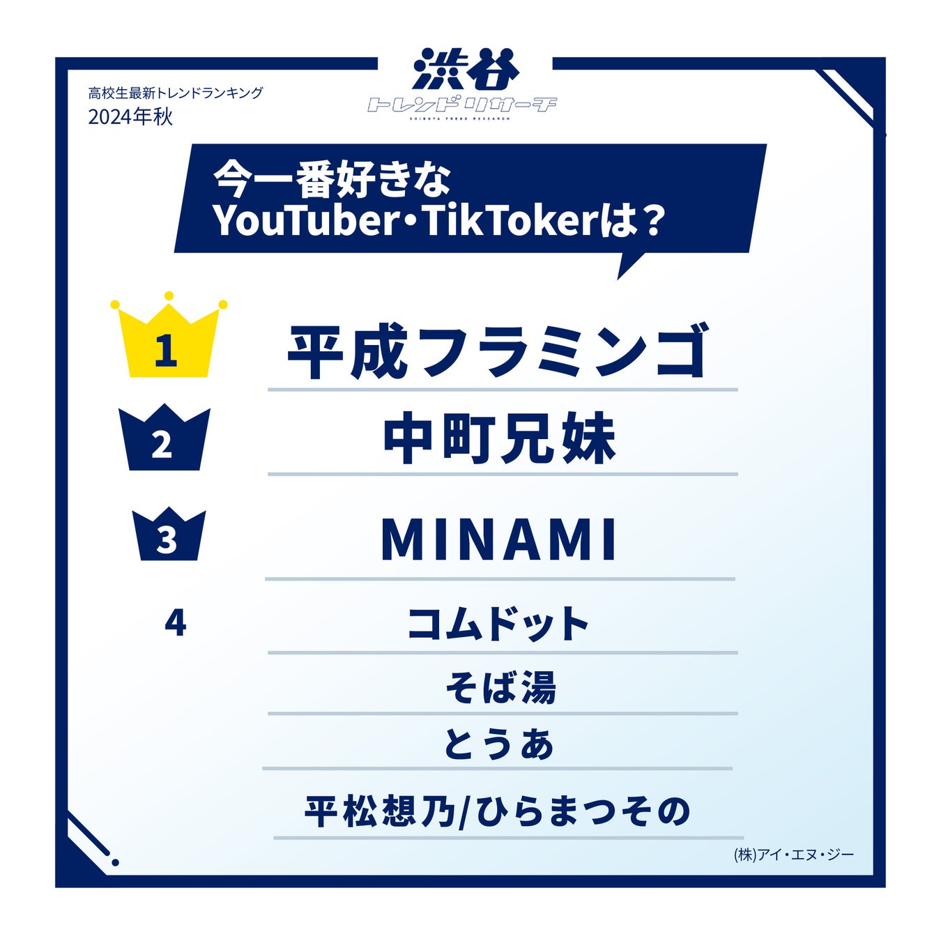 1位に「平成フラミンゴ」がランクイン。「疲れている時も笑えるから」(高1・女子)など、幼馴染である2人の息の合った“平フラワールド”が人気を集めています。今年、初となる単独イベントを8月より開催し、2人の勢いはまだまだ加速しそうです。
