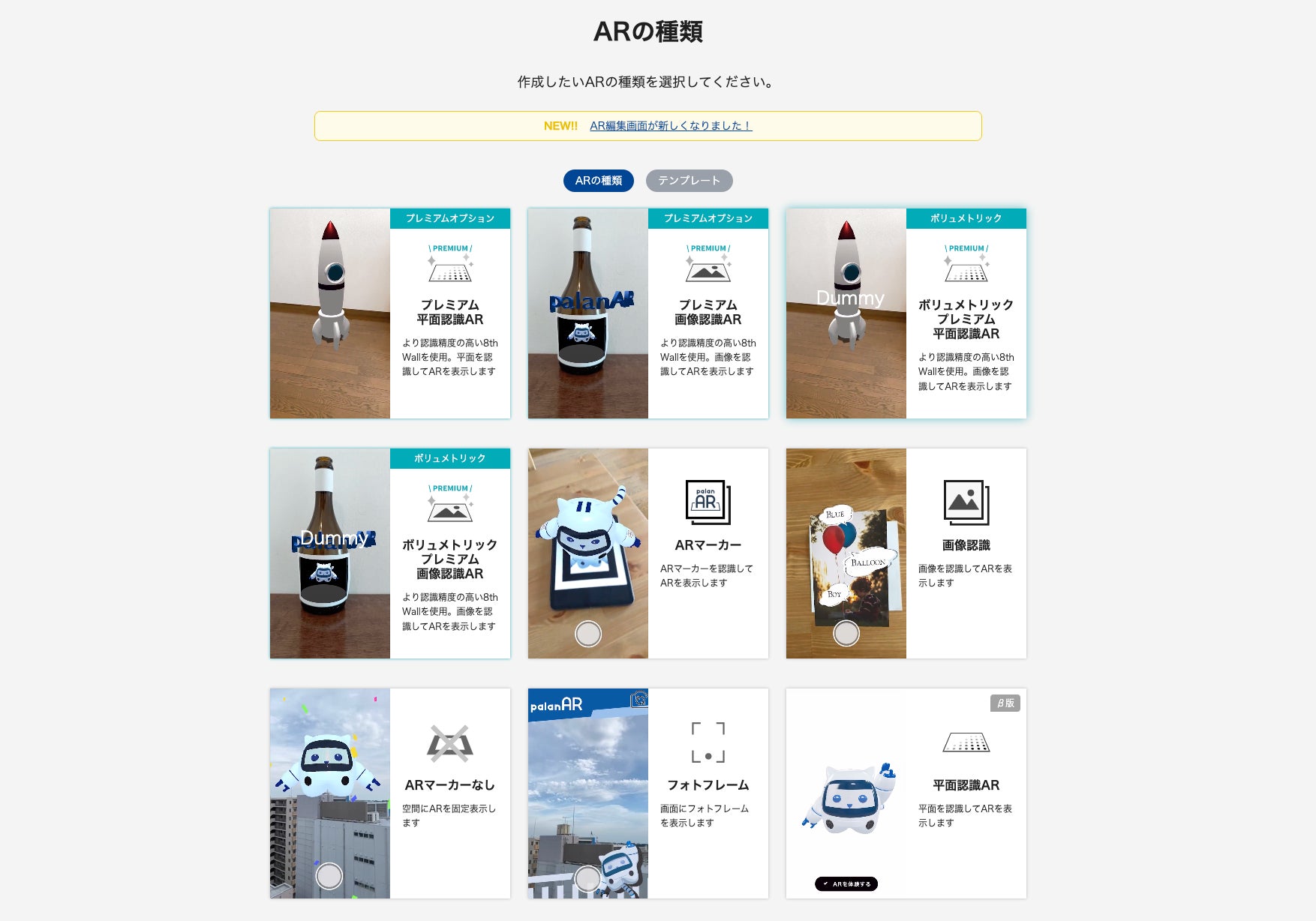 palanAR上でテンプレートをご利用頂くことで簡単に無料で作成頂けます。