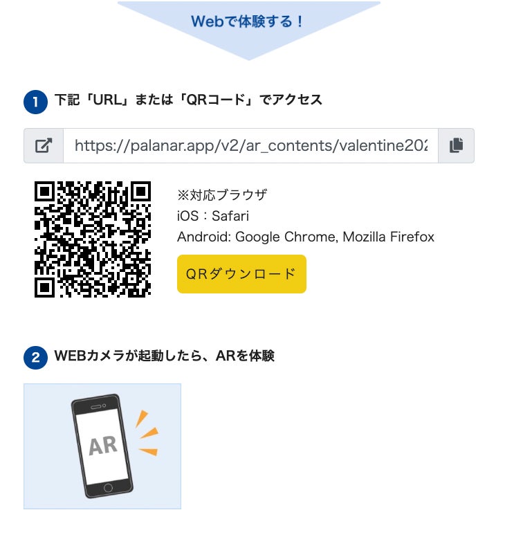 体験URL:https://palanar.app/v2/ar_contents/valentine_press_2