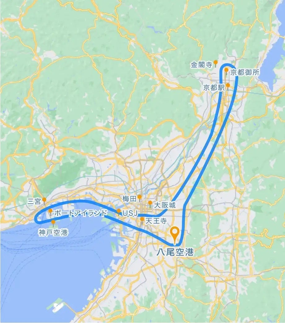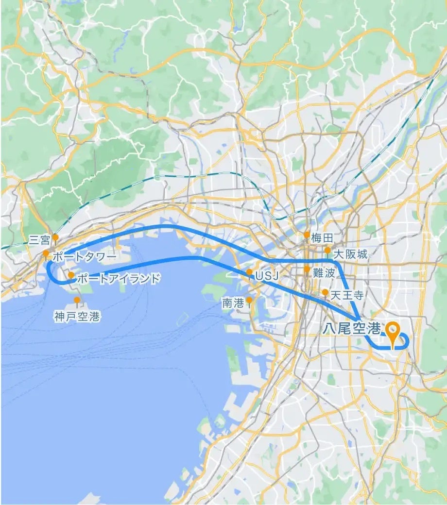 大阪・神戸コース | 30分 | 79,800円 | 大阪城、USJ、三宮、ポートアイランド |