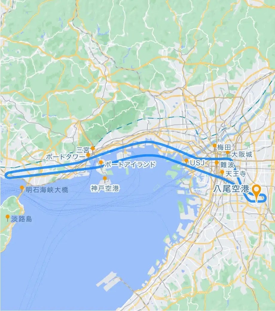 大阪〜明石コース | 50分 | 128,000円 | 大阪城、USJ明石海峡大橋、淡路島 |