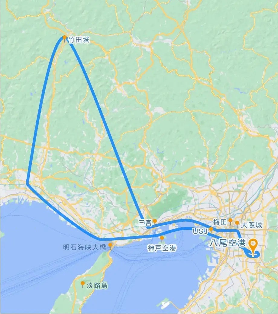 大阪エリアから竹田城まで、車で約2時間、公共交通機関で約4時間かかるところ、大阪、神戸の主要観光名所を回りながら、90分で空から観光ができるようになりました。