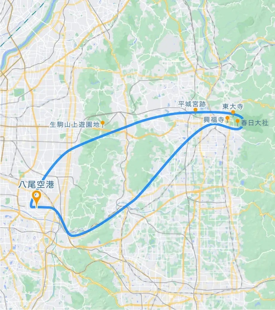 奈良コース | 25分 | 69,800円 | 平城京跡、東大寺、春日大社、興福寺 |