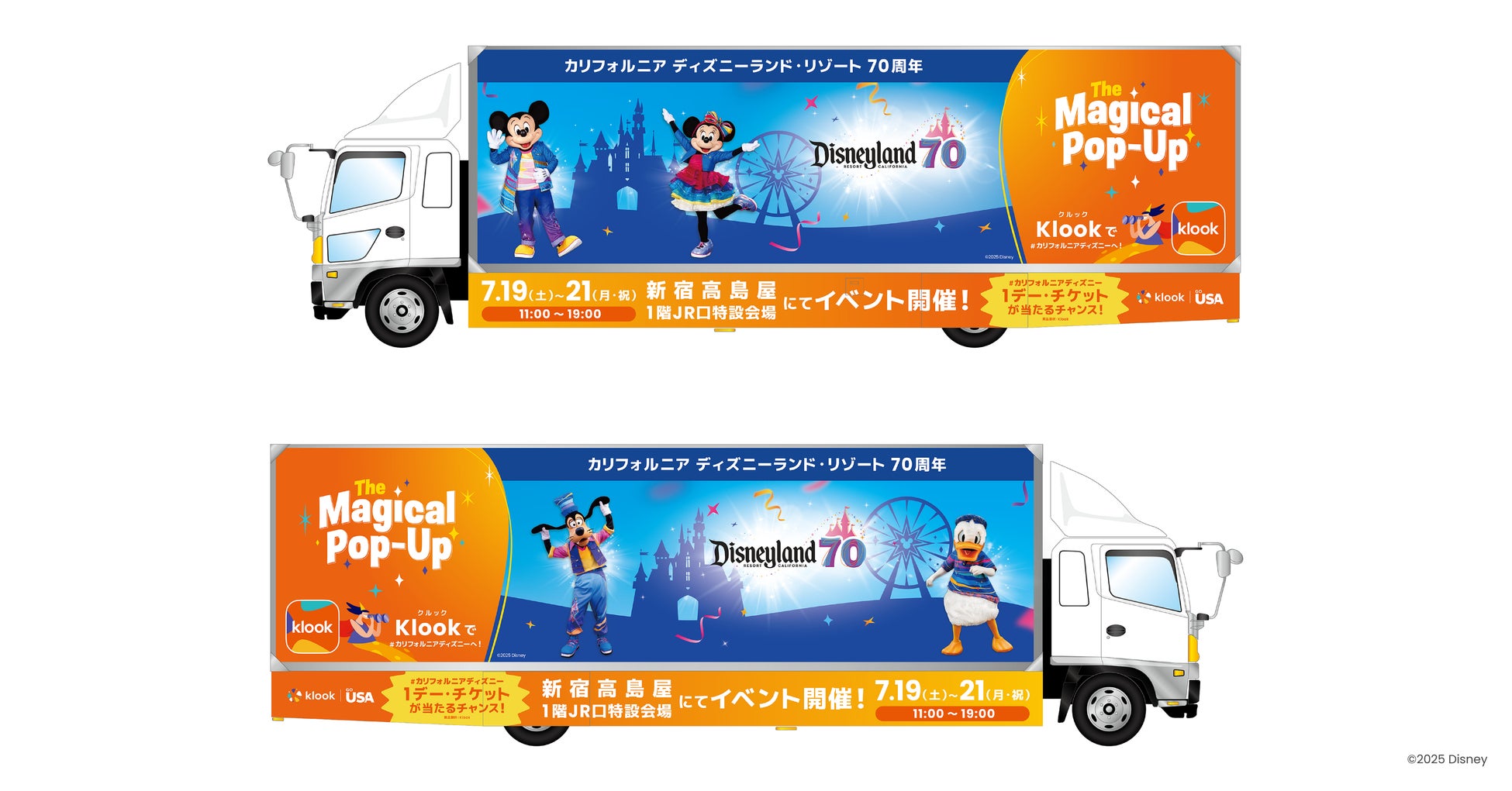 世界中の観光・交通・通信・宿泊を予約できる旅行・体験予約アプリ「Klook(クルック)」は、米国観光マーケティング組織「ブランドUSA」と連携し、この夏に向けた新たなプロモーション施策を共同で実施いたします。今回は、開園70周年を迎える「カリフォルニア ディズニーランド・リゾート」の魅力を日本のディズニーファンに届けるべく、ガラポン抽選会や70周年デザイン フォトスポットをはじめ、人気YouTuberによるトークショーなど、多彩な体験型イベントを新宿高島屋のイベントスペースで開催します。当日購入サポートデスクでは、イベント期間中に会場でパークチケットを購入いただいた方全員に、Klookから最大1万円OFFとなる来場者限定の予約特典を追加でご用意しています。カリフォルニア ディズニーランド・リゾートへの旅の楽しさを間近で感じられる特別な機会をお届けします。