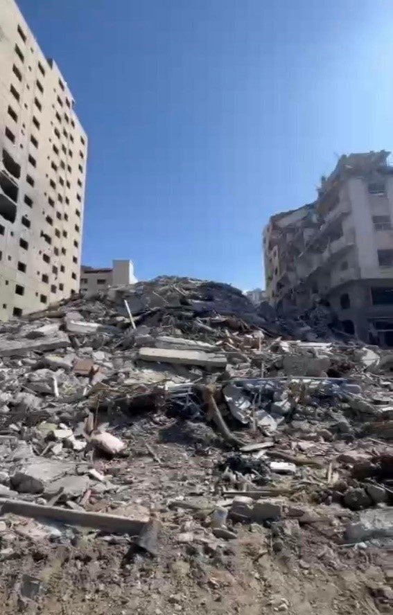 「ガザの地は子どもたちの血で染まっています。このまま戦争が続けば、子どもや生き物は生き延びることができるのでしょうか?人間らしい暮らし、美しい木々、歴史的建造物、学校・・戦争前の姿を留めているものは何一つありません。私たちは過去も現在も奪われたのです。どうか未来だけは奪わないでください。飢えて命を落とす人も大勢います。どうか、今すぐこの虐殺を止めてください。」