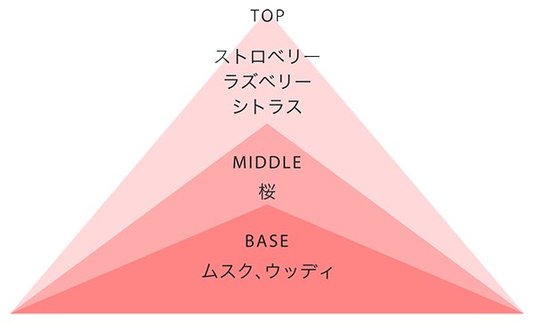 繊細な桜の花々とみずみずしいイチゴやラズベリーが調和した、春の訪れが待ち遠しくなる、さわやかで華やかな香り。