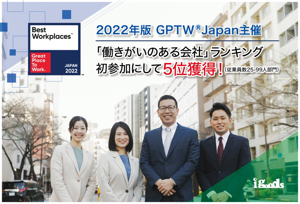 オリジナルグッズを企画製造するアイグッズ株式会社(本社:東京都渋谷区)は、Great Place to Work® Institute Japan(GPTWジャパン)が運営する「働きがい認定」にて、524社の参加企業のうち、従業員数25~99人部門(小規模部門)で第5位を獲得しました。