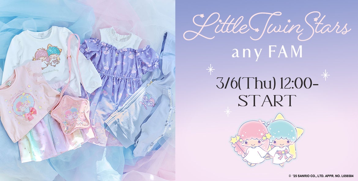 株式会社オンワード樫山(本社:東京都中央区 代表取締役社長:保元 道宣)が展開する 『anyFAM(エニィファム)』 は、株式会社サンリオの人気キャラクター 『リトルツインスターズ(キキ&ララ)』 と初めてコラボレーションした子ども服を3月6日(木)から販売開始します。