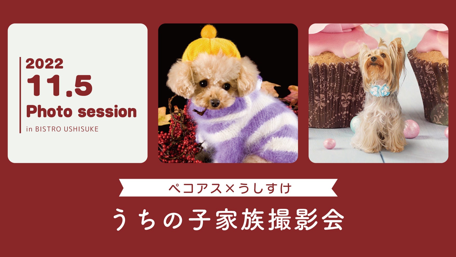 このたびの撮影会は、ペットコミュニティポータルサイトを運営するペコアスが企画する『うちの子家族撮影会』を、ペット同飯™️可レストラン「BISTROうしすけ」にて10組限定で開催する第10回目のイベントとなります。