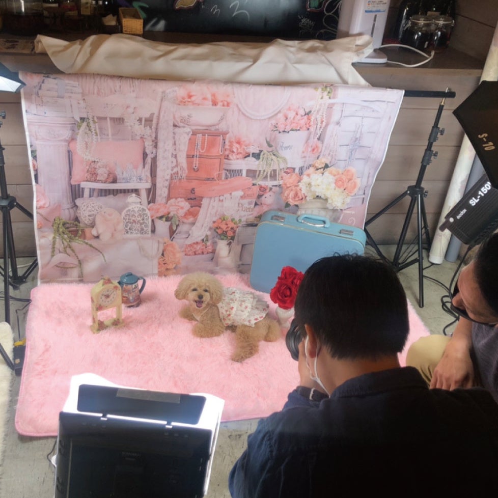 撮影会では、わんちゃんに合わせて多彩な背景色を選ぶことができます。また、世界レベルの最先端技術でPremium背景を投影する撮影も承っており、ファンタジーな可愛らしい背景をバックに愛犬の姿を残すことができます。撮影写真では、世界にひとつだけのオリジナルグッズ作成も可能です。グッズのご購入額に応じて、フリーペーパーに掲載される特典もご用意しております。